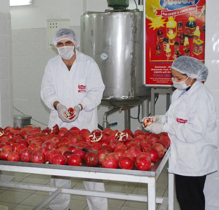 TUNCA GIDA, which started its operations in 2001, has established a nationwide sales network today. Our company has aimed to create wider sales networks in Asia and Europe while sales of pomegranate sauces to many countries continue. Our company, which has an indoor area of 4000 square meters, has been manufacturing since 2001 and meets the need for pomegranate syrup and pomegranate sauce of domestic and foreign markets.